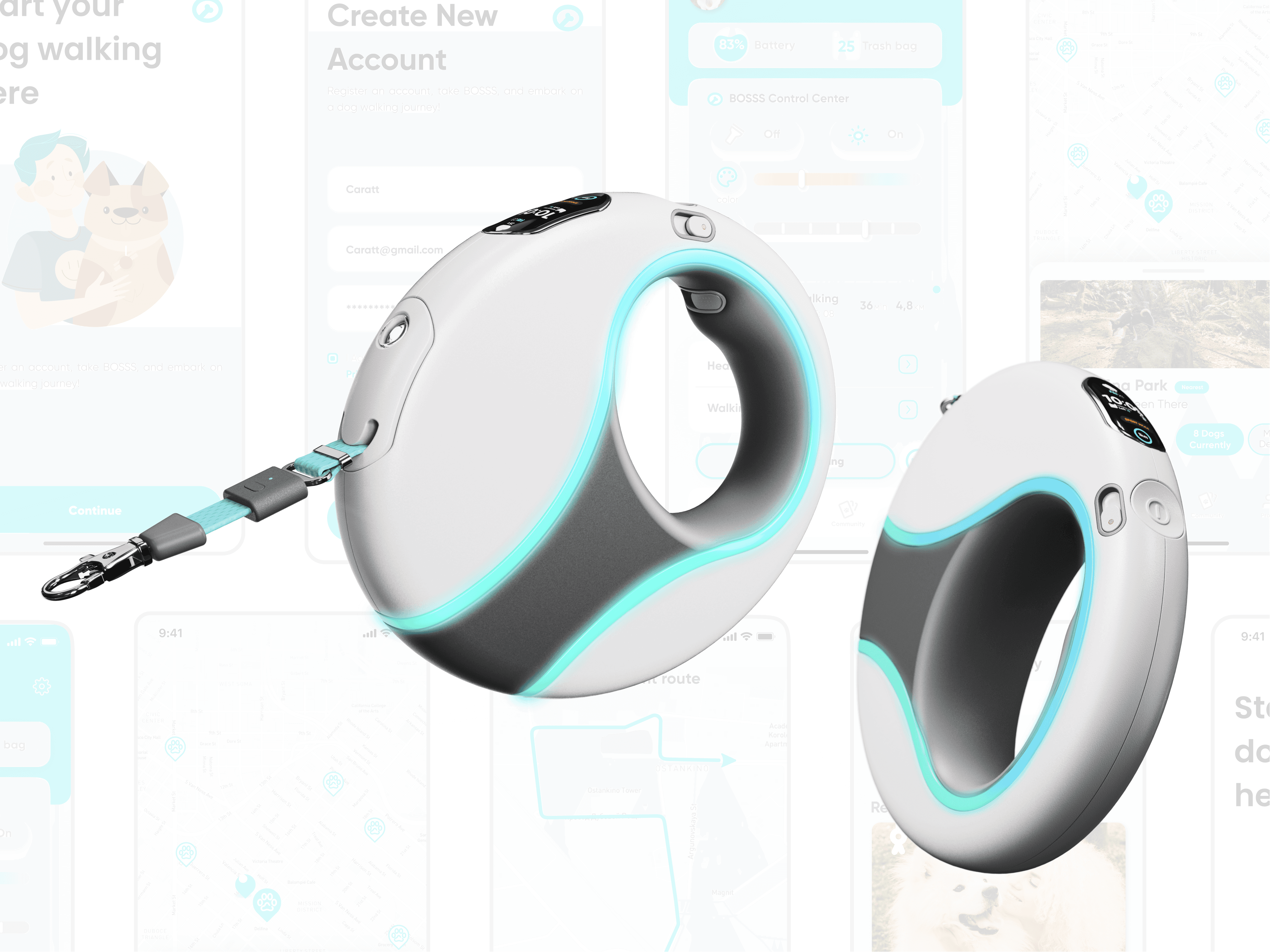 A smart dog leash designed to improve the daily dog-walking experience. The innovative design considers the entire walking process and focuses on key needs such as safety, comfort, and the emotional interaction between owners and their pets. The leash integrates multiple smart features, including motor-assisted retraction, automatic locking when abnormal pulling is detected, and Bluetooth connection with a smart pet lock for one-click release.