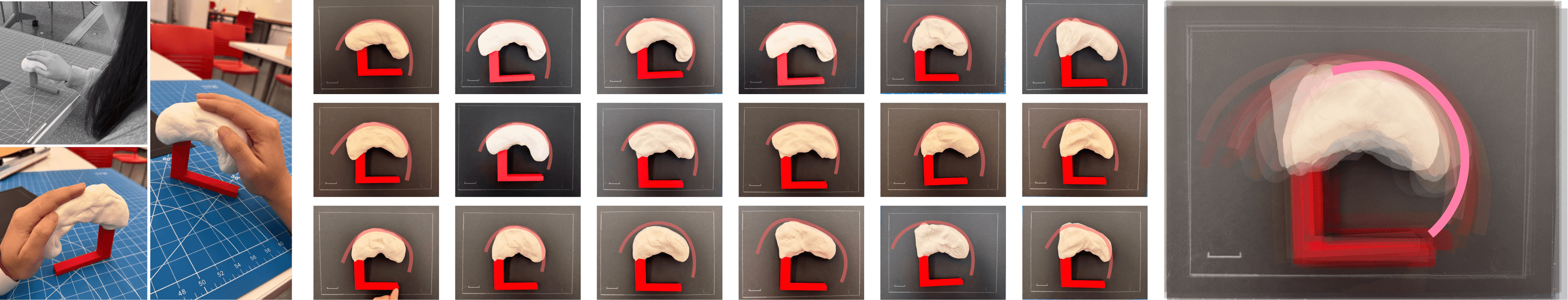 We invited 18 users to shape clay to the curve that felt most comfortable in their hand, documenting each preferred gesture and contour. We then overlayed all these curves together to get a shared, universal arc that defines our product’s form.